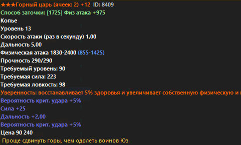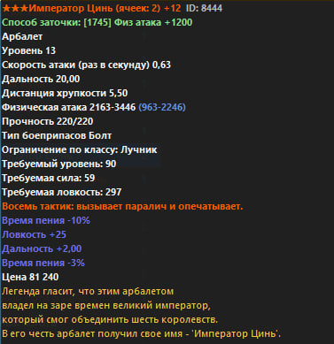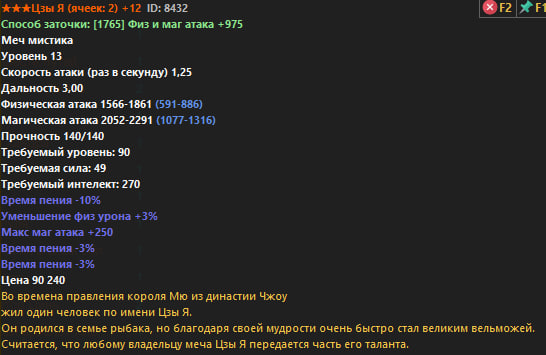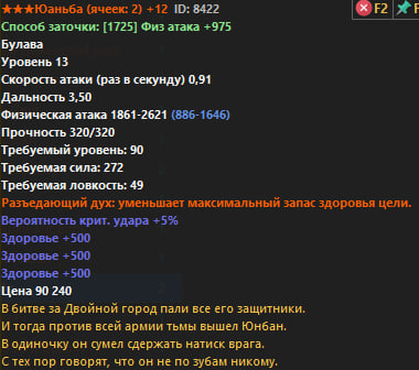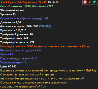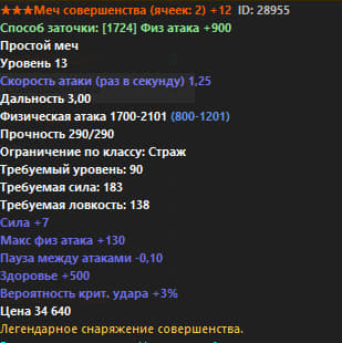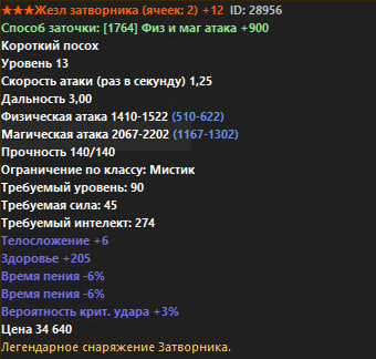 Ниже представлен полный список всего оружия Р6. В строках Физический и Магический урон, синим цветом показан стартовый урон без заточки, белым же отображен урон с +12